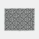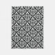 Scroll and leaf damask in a vintage style pattern, with white detail on a black background.