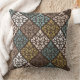 Scroll Damask Rpt Ptn Teals Browns Gold Crm White Cushion