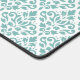 Scroll and leaf damask in a vintage influenced pattern, in teal colour detail on a background colour of your choice.