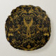 Scroll work is a digital graphic art design. Scrolls, curves; leaves and hearts in a metallic finish create a whimsical fun background pattern. I placed the gold scrolls onto a solid black background. This scroll work design is available in assorted colours. The design is on both sides of the pillow.