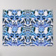 Scrolled Leaf Blue Poster