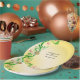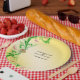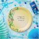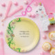 A romantic wedding plate. Green swirls and butterflies give an invigorating feel to this beautiful wedding theme. A beautiful sunburst in the background adds to the feeling of lightness. This look will go well at any wedding season, spring, summer, fall, or winter. Great for a modern wedding, and perfect for a classical wedding too!