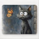Scruffy Cat Staring at a Butterfly Mouse Pad
