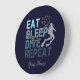 Scuba Diving Eat Sleep Dive Repeat saying Large Clock