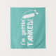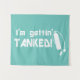 Funny scuba diving quote tapestry. I'm gettin' tanked! phrase written on a teal blue background. Alongside the phrase is a scuba tank. Ideal for scuba divers, dive schools and divemasters.