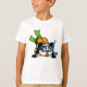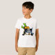 100% cotton so perfect for summer, It is a nicely designed t-shirt, the fabric is soft and the seams finished well, the body of the t shirt has no side seams. I bought a medium size for my two grandsons, aged 9 and 8 it will be slightly big on them but I would rather that than too small