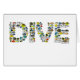 A large crowd of our cute Scubadorable fish, including Barracuda, Clownfisn and Bannerfish, are swimming together to make the word DIVE. Great gifts here for scuba divers around the world.