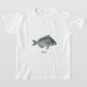 100% cotton so perfect for summer, It is a nicely designed t-shirt, the fabric is soft and the seams finished well, the body of the t shirt has no side seams. I bought a medium size for my two grandsons, aged 9 and 8 it will be slightly big on them but I would rather that than too small