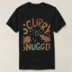 The t-shirt design captures the essence of cosy comfort with "Scurry to Snuggle" displayed in a multicolor palette. Imagine "Scurry" written in energetic, hurried colours like bright yellows and oranges, while "Snuggle" takes on softer, plush hues of pink, purple, and blue. Perhaps playful animal footprints or paw prints in various colours could decorate the space between the words, creating a sense of movement and anticipation leading to a cosy cuddle.