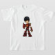 100% cotton so perfect for summer, It is a nicely designed t-shirt, the fabric is soft and the seams finished well, the body of the t shirt has no side seams. I bought a medium size for my two grandsons, aged 9 and 8 it will be slightly big on them but I would rather that than too small
