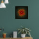 Abstract digital design of an organic flower / sea anemone in warm tones of red, orange and green.