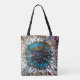 What a super tote bag in turquoise, burgundy, bronze, black and creme jewel tones. This is taken from a painting by the same name by Joy Lomenick.