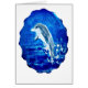 Wildlife art with a dolphin leaping out of the water creating splashes in the sea. Ideal for dolphin lovers this blue sea animal is from my original glass painting. Can be customised with your own text ©Annabel Potter
