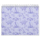 Sea animals and sailboat one line drawing pattern calendar