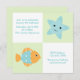 Adorable beach and summer themed birthday invitations feature cute illustrations of colourful fish, starfish, and other adorable sea critters.