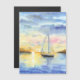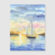 Sea at sunset. A cute yacht leaves the bay and goes to sea. The watercolor illustration was drawn and scanned. Watercolor Landscape made in the open air in 2024.