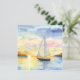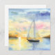 Sea at sunset. A cute yacht leaves the bay and goes to sea. The watercolor illustration was drawn and scanned. Watercolor Landscape made in the open air in 2024.