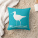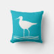 part of the ocean themed decor SEA BIRD, WHITE on blue pillow on one side and blue and white strip on back. By Sandy Closs
