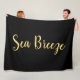 "Sea Breeze" Fancy Fun Script Black Background Fleece Blanket