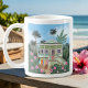 Start your day with a sip of sunshine! This charming coffee mug features a sea foam green beach house, colourful surfboards, and palm trees swaying in the ocean breeze. Perfect for beach lovers and coastal dreamers, this mug brings a warm, seaside feel to every cup of coffee, tea, or cocoa, whether you're at the beach or just wish you were.