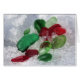 Red and green sea glass in the snow makes a beautiful holiday card.