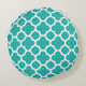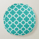 Sea Green Colour Quatrefoil Pattern Round Cushion