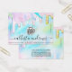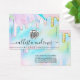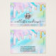 This girly and glamourous bracelet business logo display card is the perfect way to stylise your packaging and add your own personal flair and personality. It features faux printed sparkly mermaid and sea green colour thick glitter drips on top of aqua, blue, and sea green holographic iridescent background. The typography is an elegant cursive script with a modern serif font to match. The colour scheme includes aqua, white, blue, yellow, and green It's chic, pretty, unique, and luxurious; the perfect way to advertise your business and stylise your marketing and advertisement material for your customers. (bracelet cut lines are printed markers only, cutting must be completed by the customer with an Exacto knife)