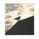 A Herring Gull sitting on a roof silhouetted against a soft golden evening sky.
