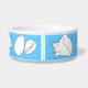 White ceramic food bowl for any animal. Your pet dog, cat or iguana will love this pretty, blue dish decorated in original art containing starfish, a sand dollar, conchs and other tropical seashells. There is no text or template for this bowl. Two sizes to choose from.