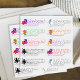Shaped return address stickers with tropical flowers and sea life designs. Colourful labels will shape to your text. Each label has an image on the left side. Hibiscus flowers, dolphin, octopus, and bird of paradise flowers are the images with coloured, printed text. Use three or four lines for the address, which will print the same on all labels. Shown on a 6 inch sheet size. If you want larger labels, choose a larger sheet size.