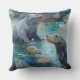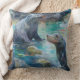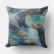 Sea Lions Sit on Rocks in Teal Water Cushion
