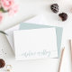 Our chic personalised stationery flat cards feature your name or choice of personalisation along the bottom in barely there pastel sea green hand lettered script with decorative swashes.