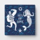 Sea cartoon illustration with sailor and mermaid in love on fish background | © and ® Bigstock® - All Rights Reserved.