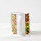 A mug with an attractive photo of red and yellow tulips back-lit by the sun in Gorsedd Gardens, Cardiff, Wales.