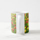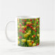 A mug with an attractive photo of red and yellow tulips back-lit by the sun in Gorsedd Gardens, Cardiff, Wales.