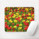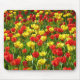 An attractive photo of red and yellow tulips back-lit by the sun in Gorsedd Gardens, Cardiff, Wales.