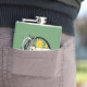 The flask itself is fine. It’s a cheap flask, obviously bought in bulk, however am prepared to overlook that. Given that it is a personalized item, I would have liked to have seen gift boxing instead of the generic packaging. Terrible printing, and/or quality. It’s a cheap, tacky vinyl. It is not cut straight and is also applied in a way that it is overhanging the bottom, causing the glue to catch on items and it will eventually roll and tear, damaging the wrap.