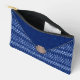 With a mood of the seaside and summers at the Cape, the original collage by ZoeSPEAK on this small Accessory Pouch is definitely casual chic. Done in the style of a clutch bag, in marine blue and white, the flap of the purse is textured dark blue with a white edge. The rest of the bag is blue with white to light blue shapes like water droplets in a zigzag pattern. A sea shell completes the picture, acting as a closure on the point of the flap. The shell is a scallop shell in shades of warm beige and light brown.