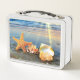 This is a standard metal lunchbox that appears to work just fine. We designed this box ourselves with an uploaded photo and custom text on the front and back. It looks absolutely beautiful except the front of the lunchbox is not centered like it shows in the photo. The print borders don't align with the inset flat part of the box where the preview photo online showed it perfectly centered in there. The back looks nice and centered though.