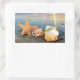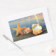 Sea shells and starfish on beach rectangular sticker