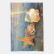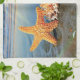 Sea shells and starfish on beach tea towel
