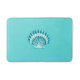 Scallop shells rendered in conte crayon - shades of teal blue layered over a soft aqua / pastel turquoise background bath mat