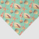 Linda Baysinger Peck's sea shells design, with queen conch shells, starfish, scallops and more on aqua background.