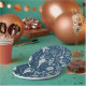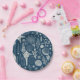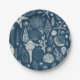 Sea shells on dark blue paper plate