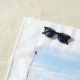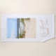 Beach towel with photo of the seashore with sand dunes and beach grasses, including a humourous quote of On Beach Towel Time.