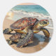Sea Turtle and Baby on Beach Illustration Classic Round Sticker