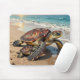 Sea Turtle and Baby on Beach Illustration Mouse Pad