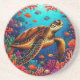Detailed illustration of a sea turtle swimming amid vibrant coral reefs and colourful fish in a clear ocean, capturing the beauty and diversity of marine wildlife.