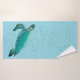 Bathroom towel set with images of sea turtle against a seafoam coloured background with bubbles.