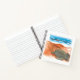 A fun and colourful watercolor pen and ink drawing of a sea turtle on the beach (and don't miss the pup in the surf!) graces the front of this versatile custom spiral notebook.
